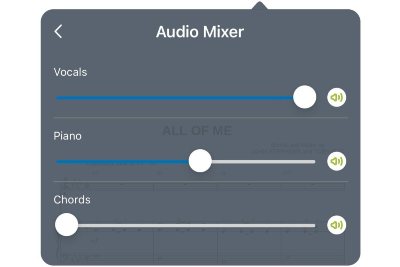 The audio mixer is great for singers and instrumentalists alike. If you are playing an arrangement with multiple parts, try making your part louder and the other part(s) softer. This way, you can amplify the part that you most need to hear when practicing, but still stay in time and tune with all the other parts. This is great for learning harmonies as well. Check to see if your arrangement has the option to turn up or down different vocal lines. If it does, learning harmonies just became easier!