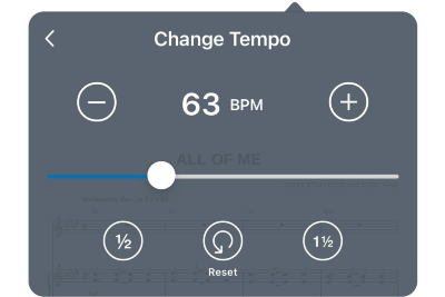 The tempo adjustment feature is one of the best aspects of the Musicnotes app! You have a wide range of options for what tempo to use in the playback.