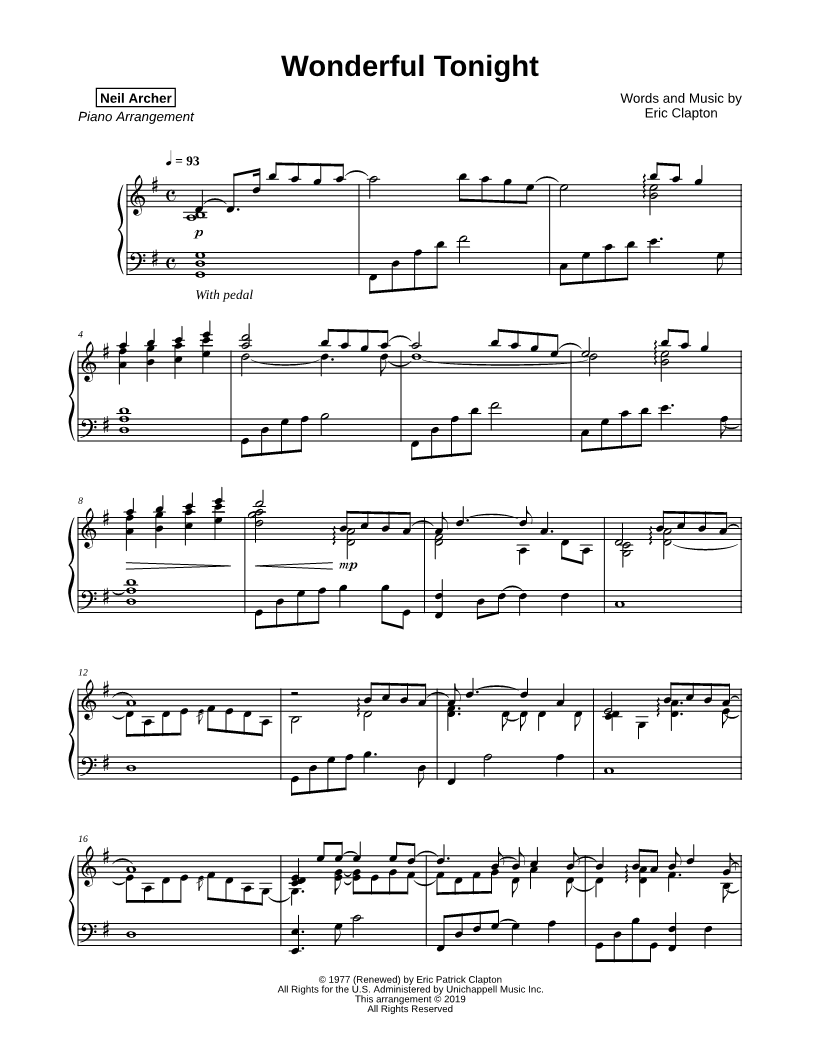 1. Wonderful Tonight (click here to preview and play this piece) Performers: Composer: Lyricist: Scored For:Instrumental Solo Instrument:Piano Number of pages:4 Click here to purchase this piece separately for $9.99 |