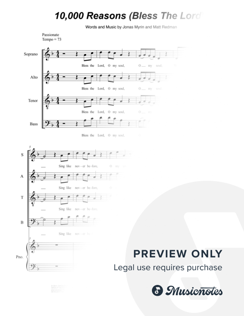 10,000 Reasons (Bless the Lord) (Vocal Quartet - (SATB) |