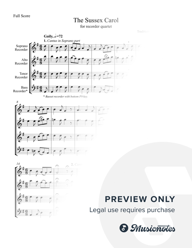 In each of the four verses in this old English carol for Recorder Quartet (SATB), the original melody is played by a different member. 8 Pages – Full Score, Parts, Original Song. Medium Skill. Approx. 1 min. 30 sec. Check out its companion, The Coventry Carol.