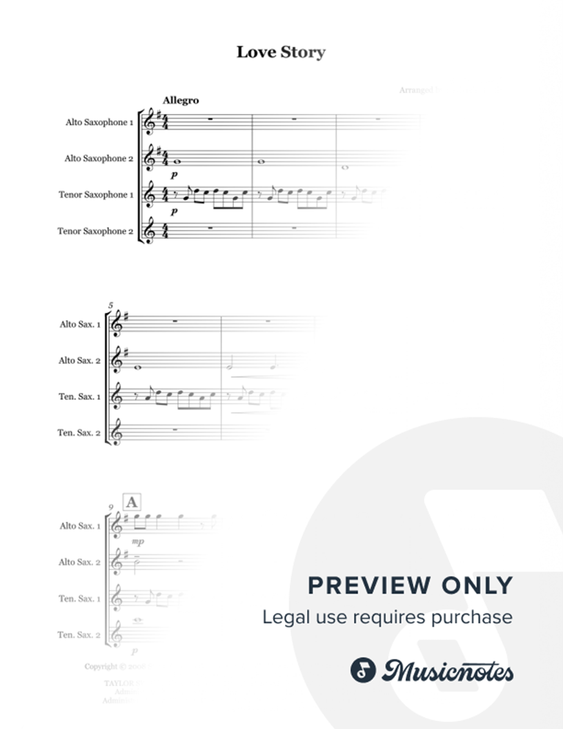 Taylor Swift’s great pop song ‘Love Story’ arranged for AATT saxophone quartet.