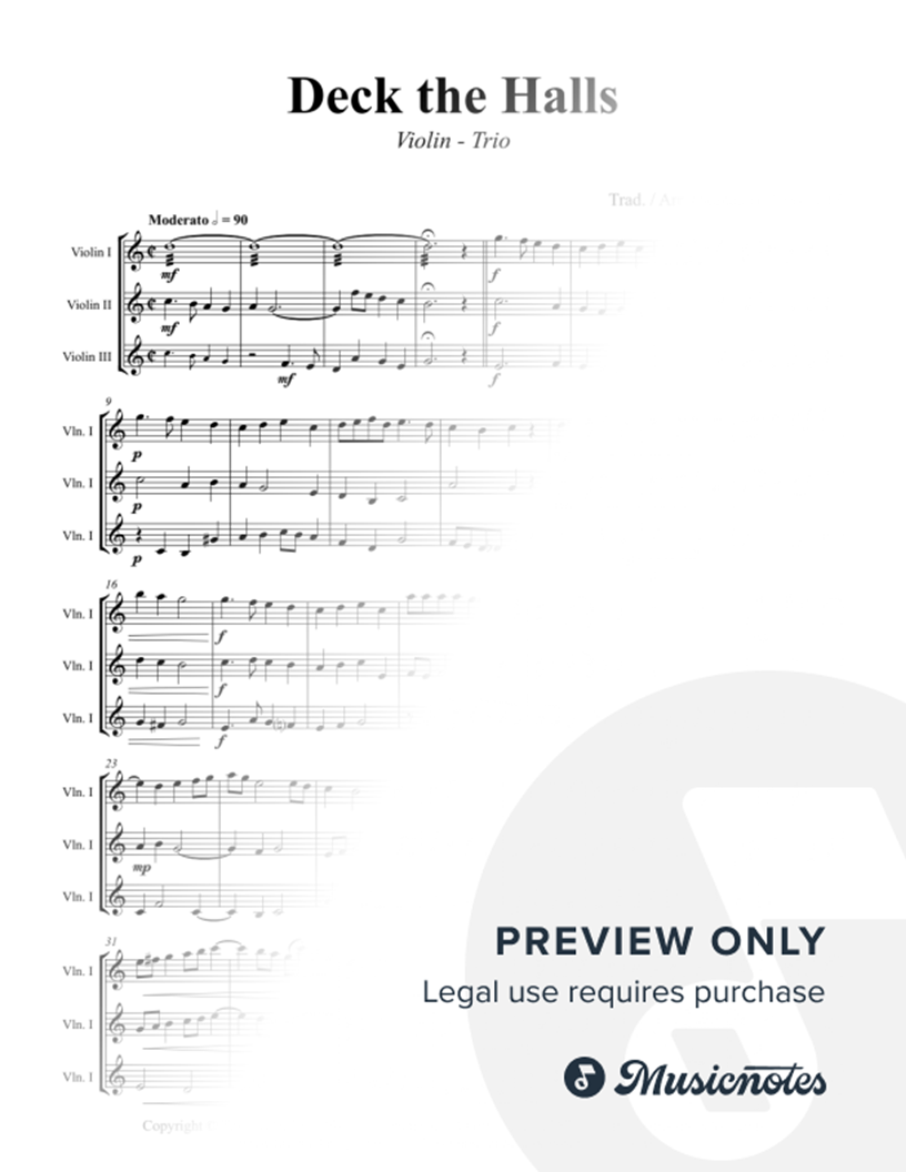 Deck the halls - Christmas Carol Polyphonic - Violin Trio |