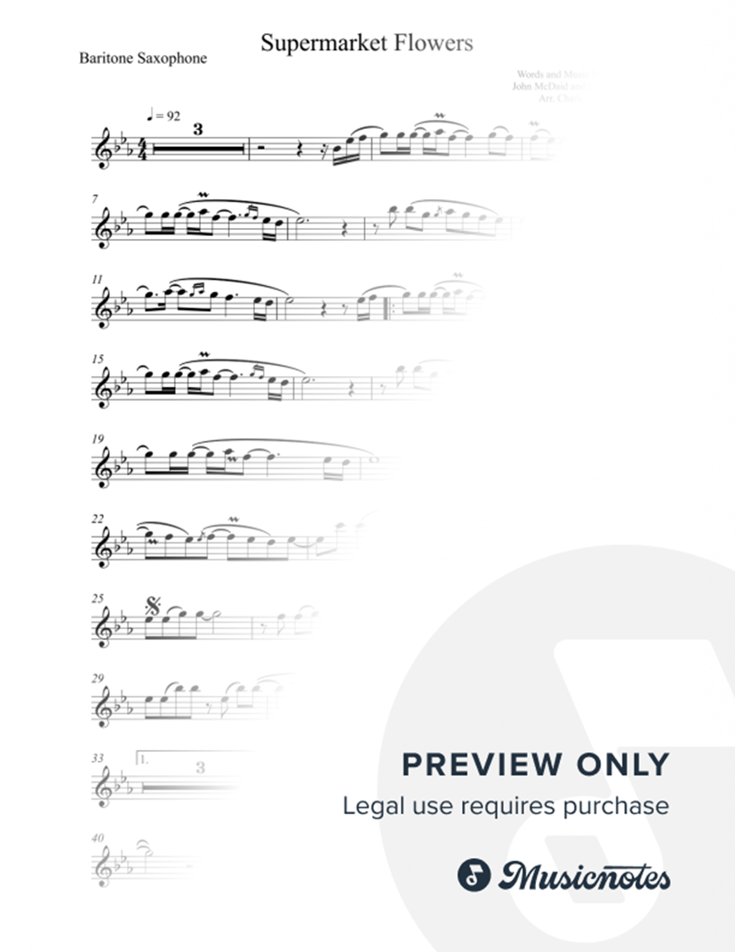 Supermarket Flowers - Ed Sheeran (Advanced Baritone Saxophone) - Original Key |