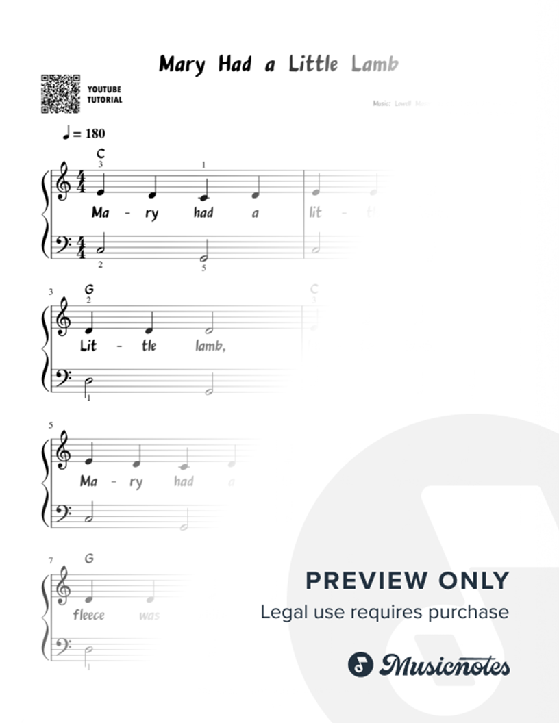 Mary Had a Little Lamb | Easy Piano Sheet Music for Beginner Pianists