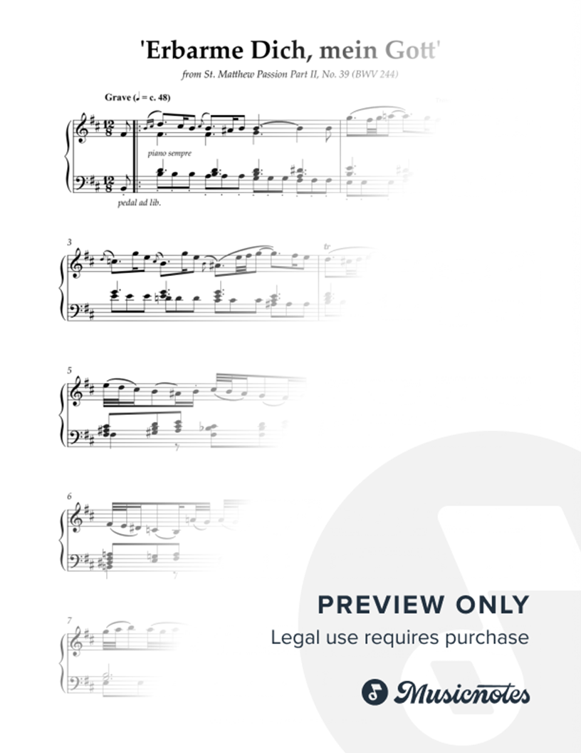J.S. Bach - "Erbarme dich" from "Matthäus-Passion" (St. Matthew Passion) BWV 244 (for Piano Solo) |