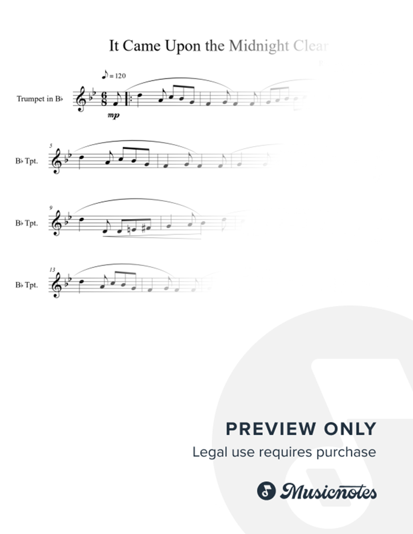 Also rendered as "It Came Upon a Midnight Clear," this carol is arranged for solo trumpet. Great for lessons, recitals, caroling, church services, and Christmas parties.