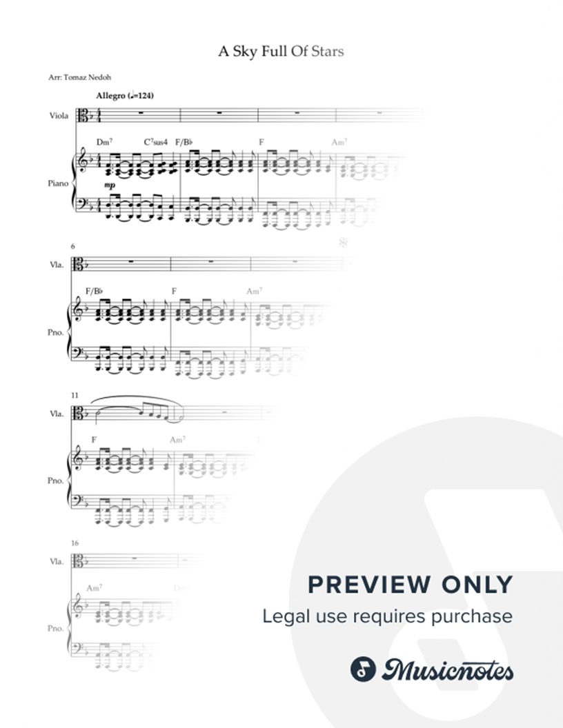 A Sky Full of Stars (Tomaz Nedoh) Viola and Piano Accompaniment |