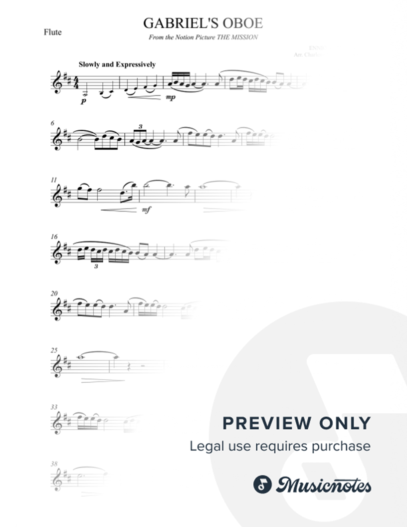 Gabriel's Oboe - Morricone - Flute - Original Key |