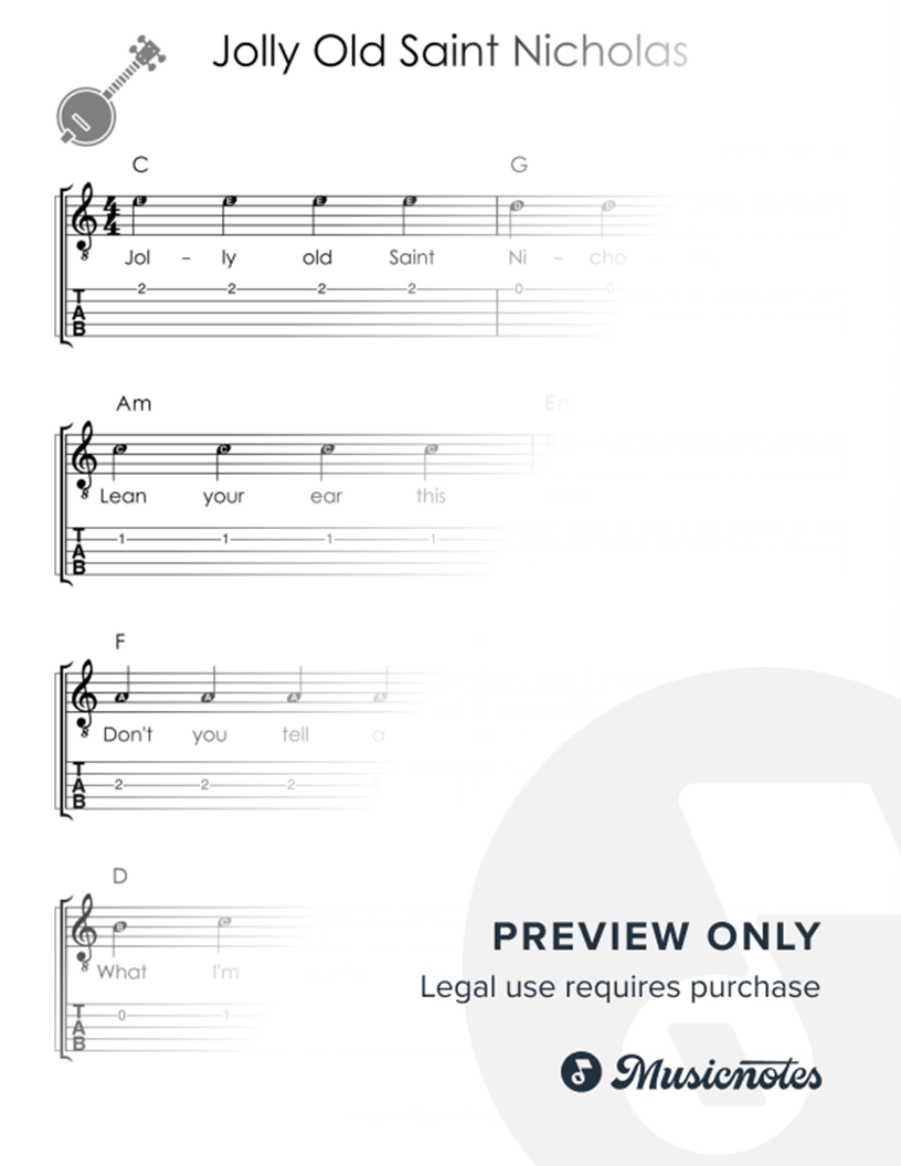 Jolly Old Saint Nicholas I Easy Banjo Sheet Music for Beginners |