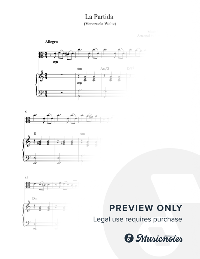 For viola solo and piano accompaniment with chords. Separated solo part is included.