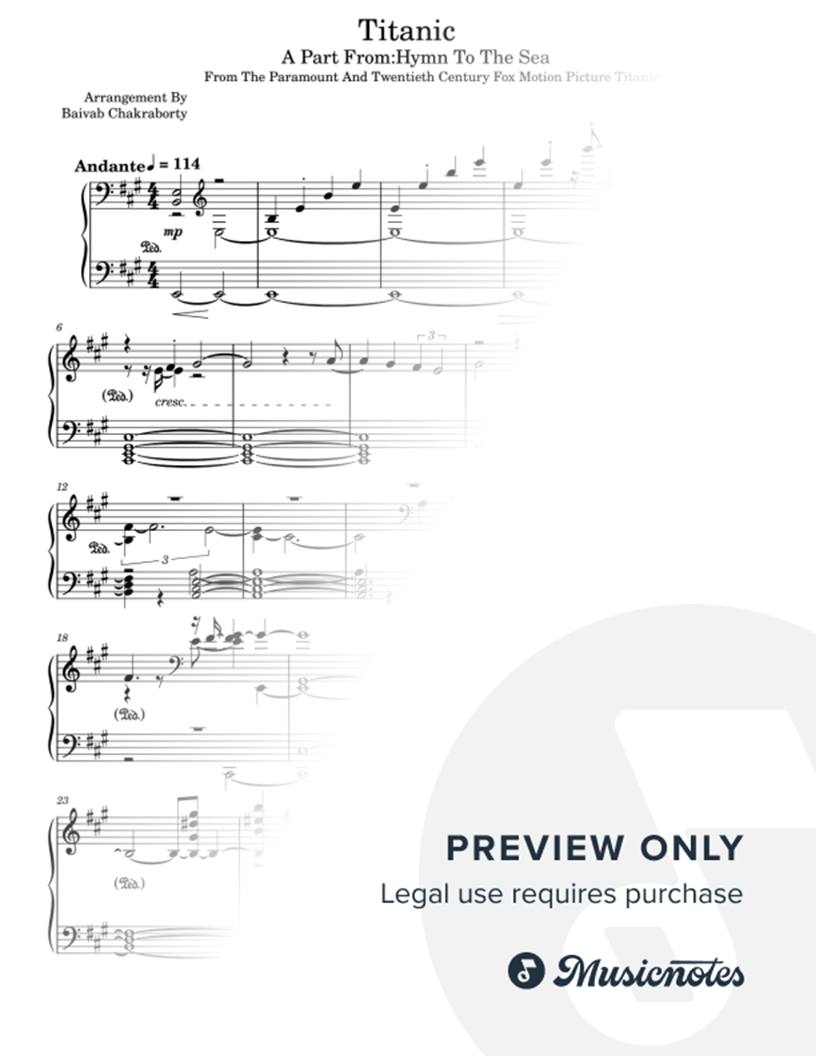 This is a beautiful arrangement of the great song Hymn To The Sea for performing piano solo.