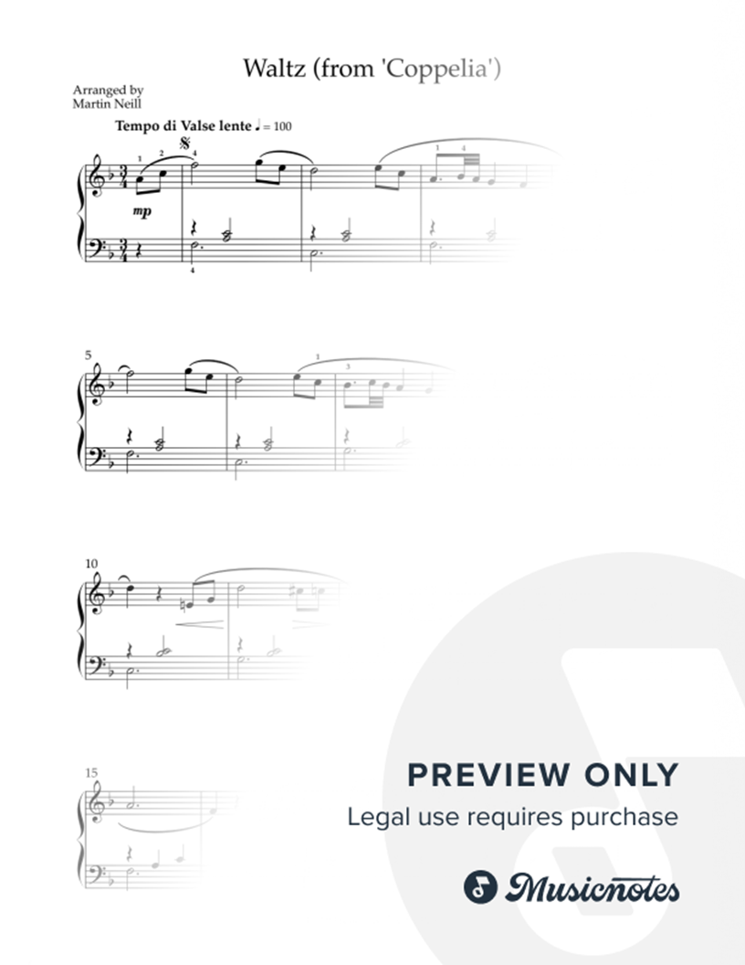 Enjoy a piano solo version of this popular tune from Delibes' ballet score.