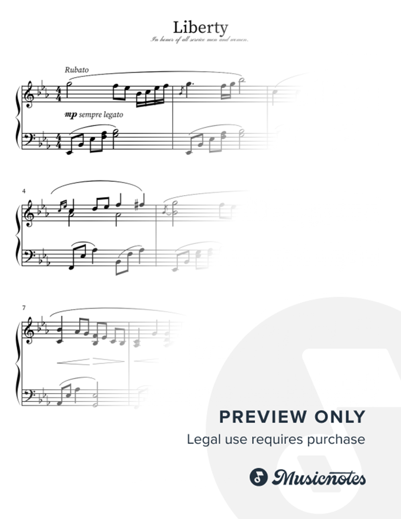 A lyrical, original prelude woven into an arrangement of AMERICA for solo piano. Dedicated to our wonderful men and women who serve our country.