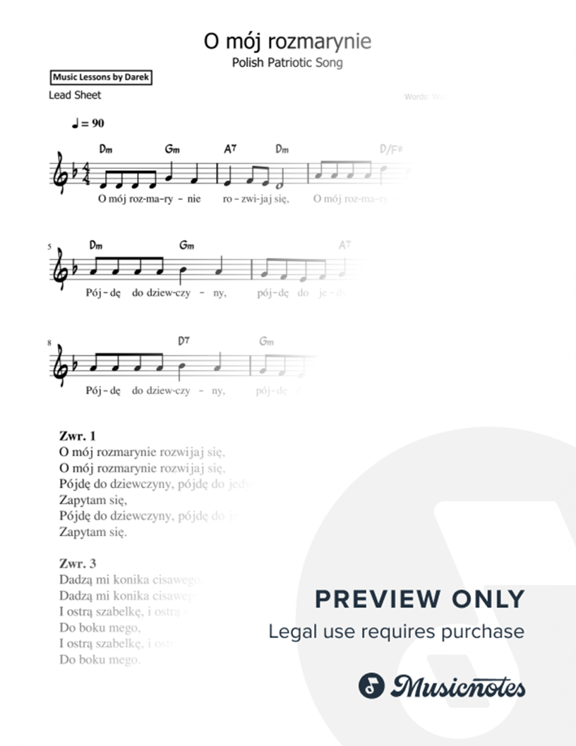 O mój rozmarynie (Oh My Rosemary) | Lead Sheet | Polish Patriotic Song | Patriotyczne Nuty i Akordy |