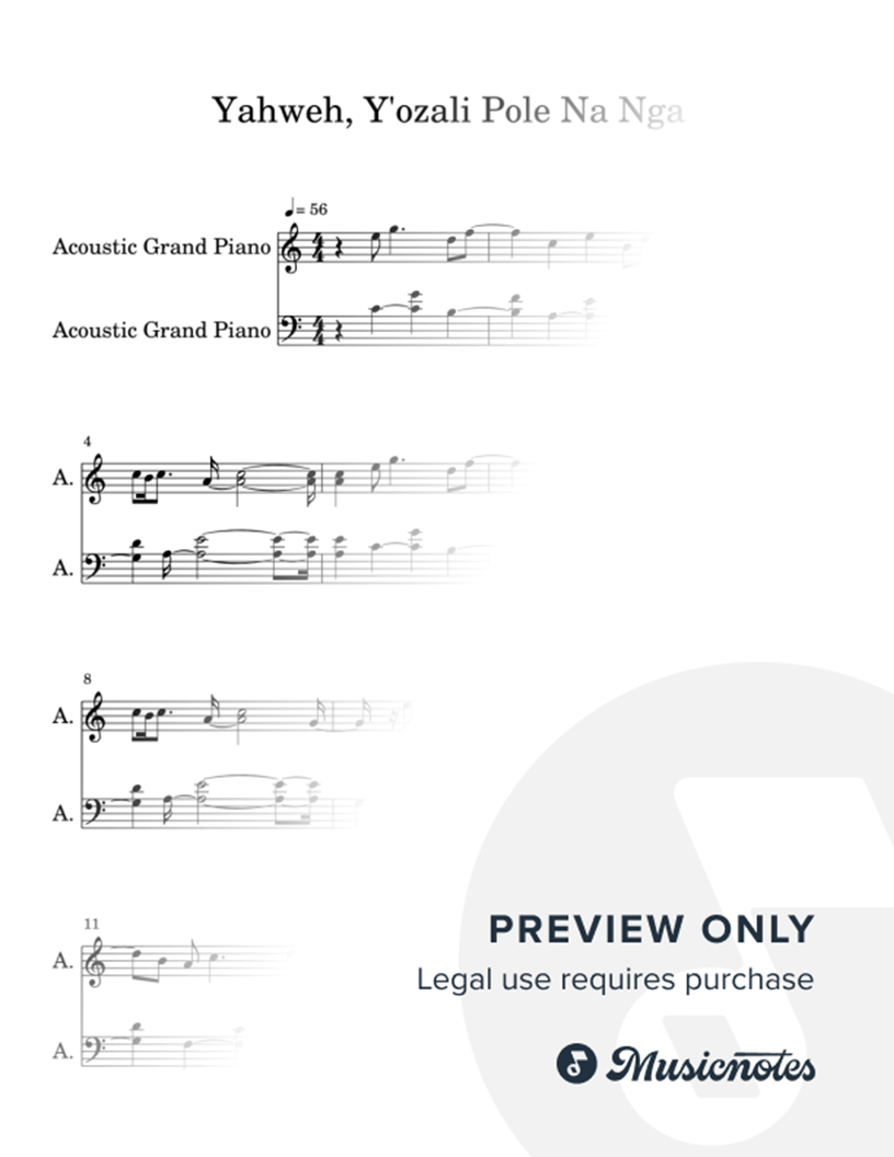 Many of the arrangements on Musicnotes have transpositions available, typically in C Major, as well as 3 sharps and 3 flats. If you do not see your desired key, you can request a transposition by reaching out to Customer Support.