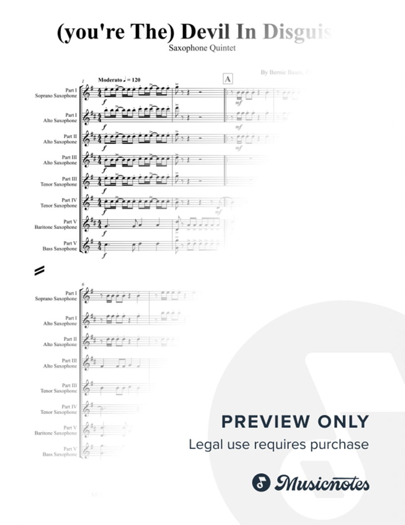 (you're The) Devil In Disguise - Elvis Presley - Saxophone Quintet |