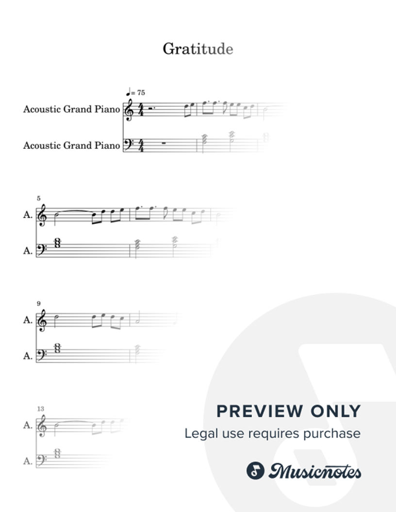 Many of the arrangements on Musicnotes have transpositions available, typically in C Major, as well as 3 sharps and 3 flats. If you do not see your desired key, you can request a transposition by reaching out to Customer Support.