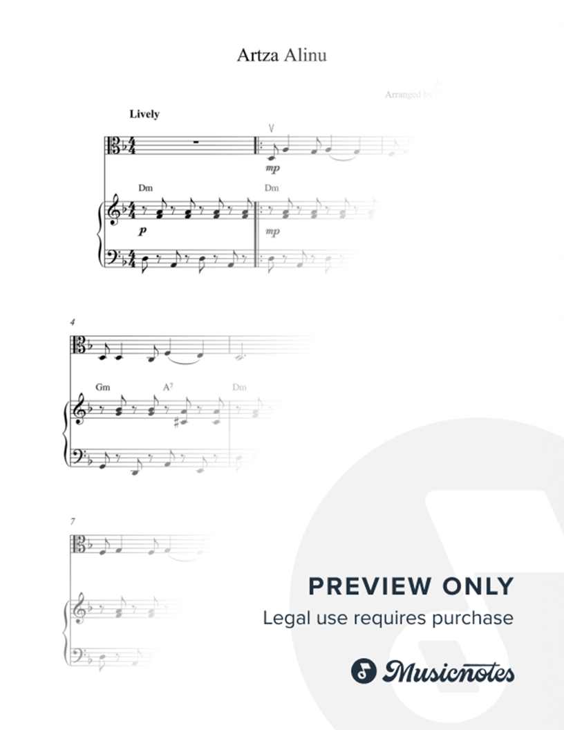 For viola solo and piano accompaniment with chords. Separated solo part is included.
