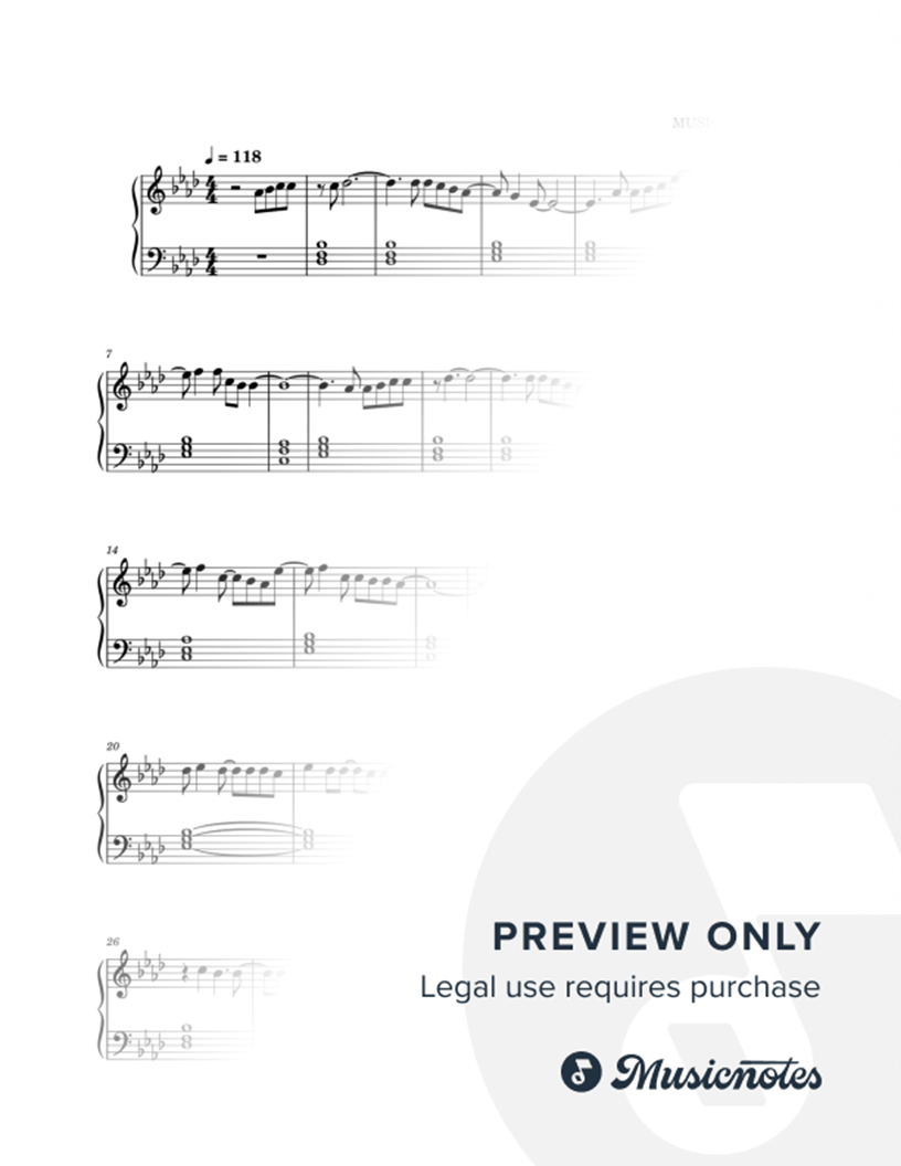 Many of the arrangements on Musicnotes have transpositions available, typically in C Major, as well as 3 sharps and 3 flats. If you do not see your desired key, you can request a transposition by reaching out to Customer Support.