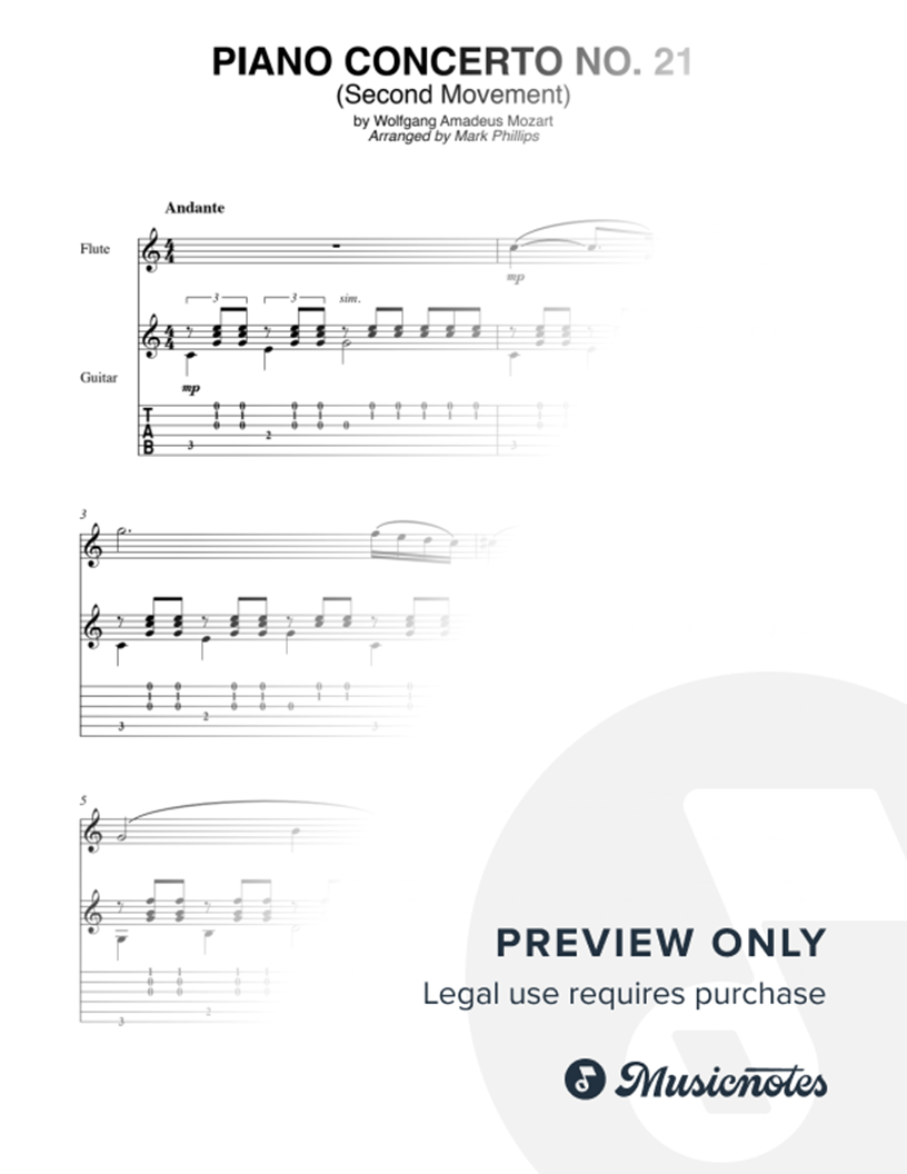 Mozart's Piano Concerto No. 21 (Second Movement Theme) for flute and guitar