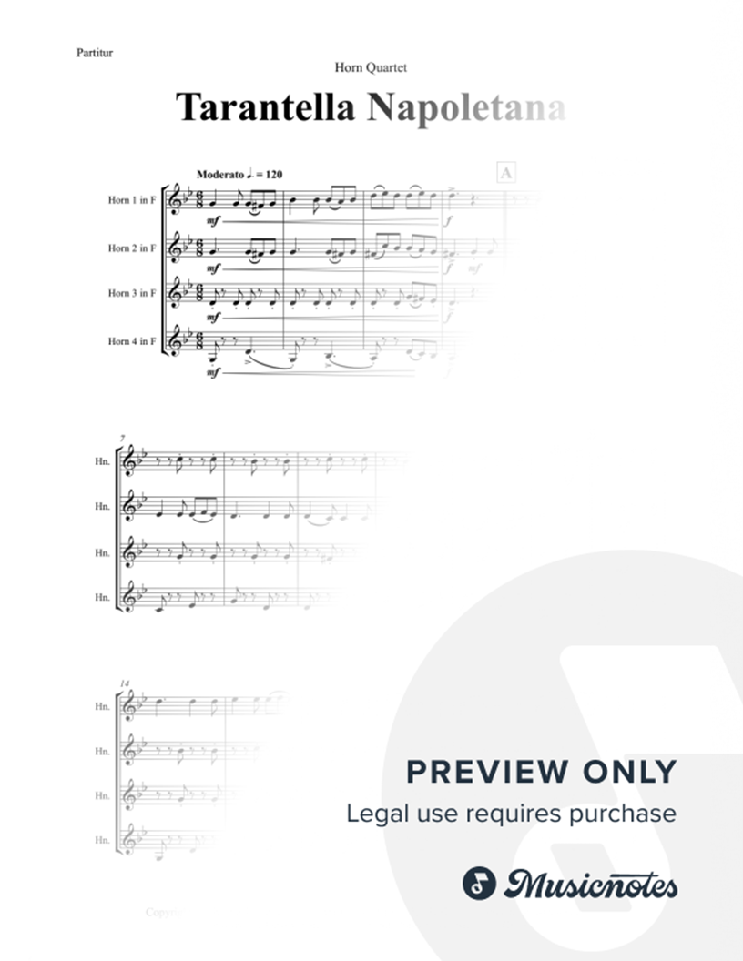 Tarantella Napoletana - Italian Folk Song - Horn Quartet - Eb |