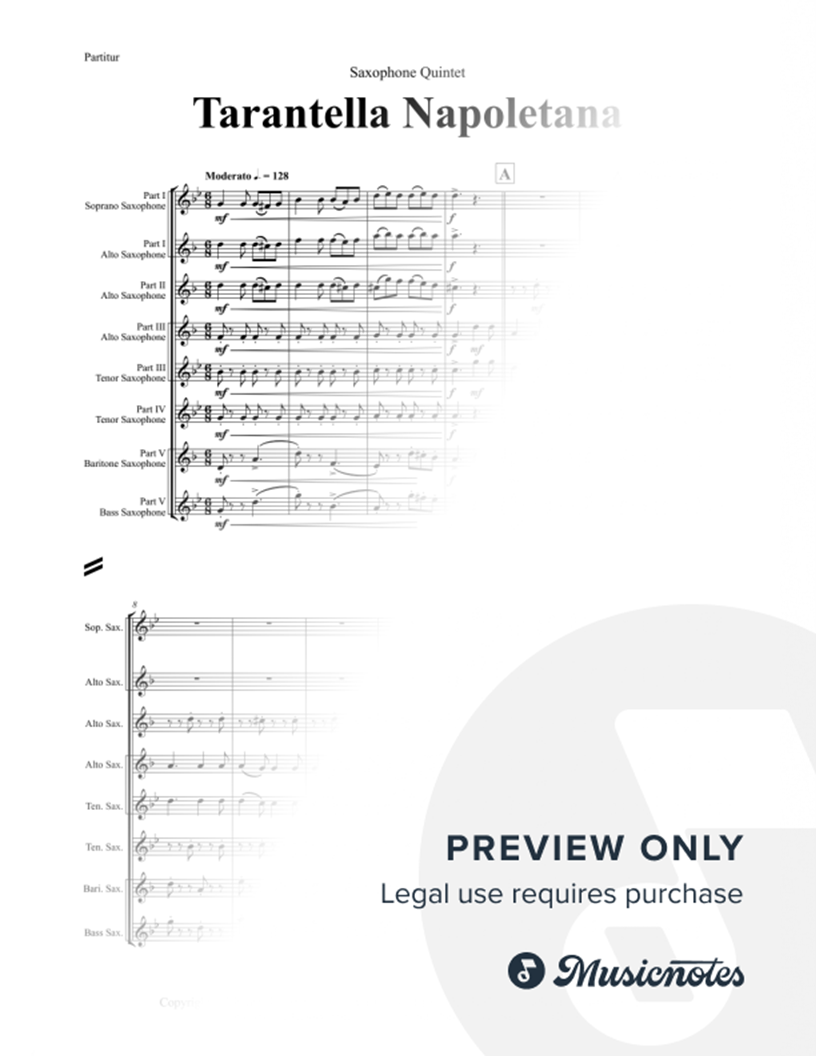 Tarantella Napoletana - Italian Folk Song - Saxophone Quintet - Ab |
