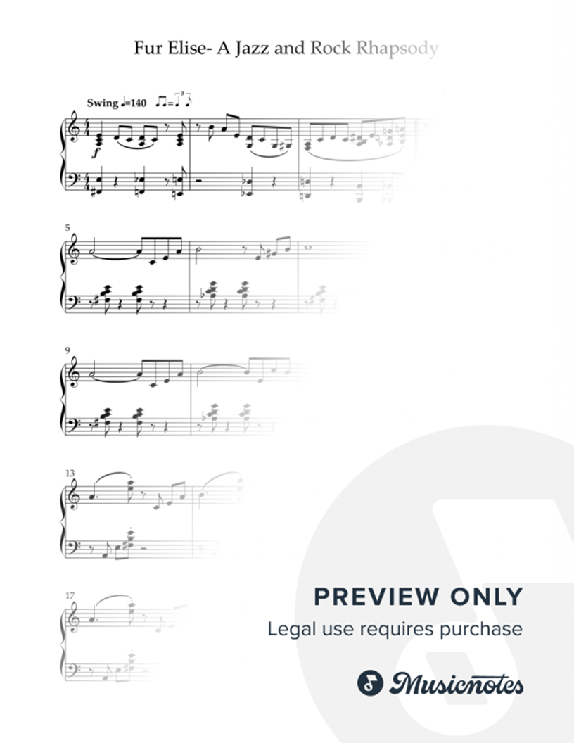 "Fur Elise"- by Beethoven A Jazz and Rock Rhapsody- Piano solo. Arr Grant Horsley |