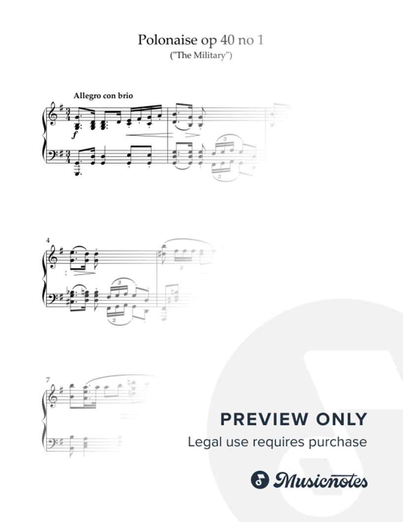 Polonaise op 40 no1 "The Military" by F Chopin. Simplified version. Arr Grant Horsley |