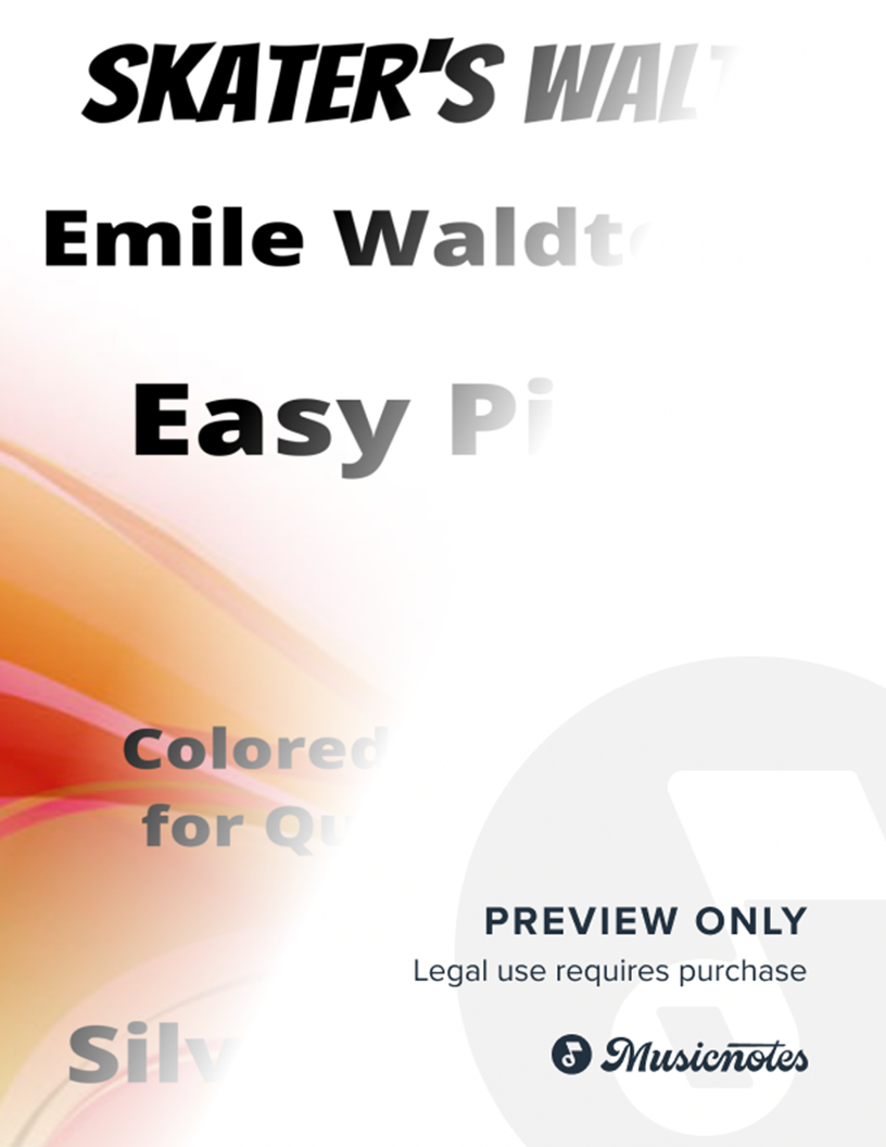 Skater's Waltz Easiest Piano Sheet Music with Colored Notation |
