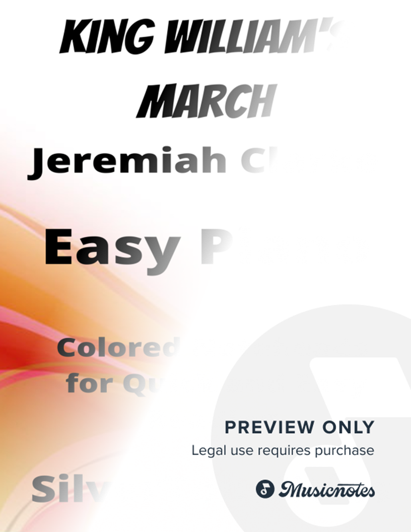 King William's March Easy Piano Sheet Music with Colored Notation |
