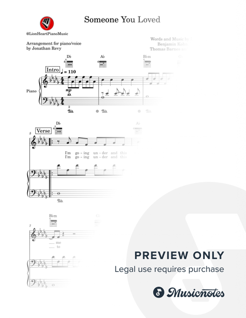 Piano/Voice arrangement of Someone You Loved by Lewis Capaldi