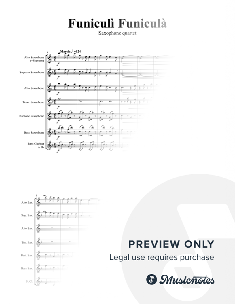 Funiculi Funicula - Italian Evergreen - Saxophone Quartet - Eb |