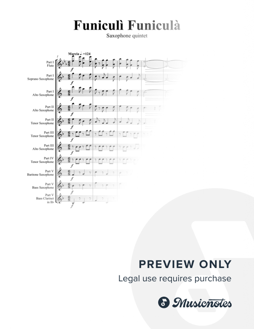 Funiculi Funicula - Italian Evergreen - Saxophone Quintet - Eb |