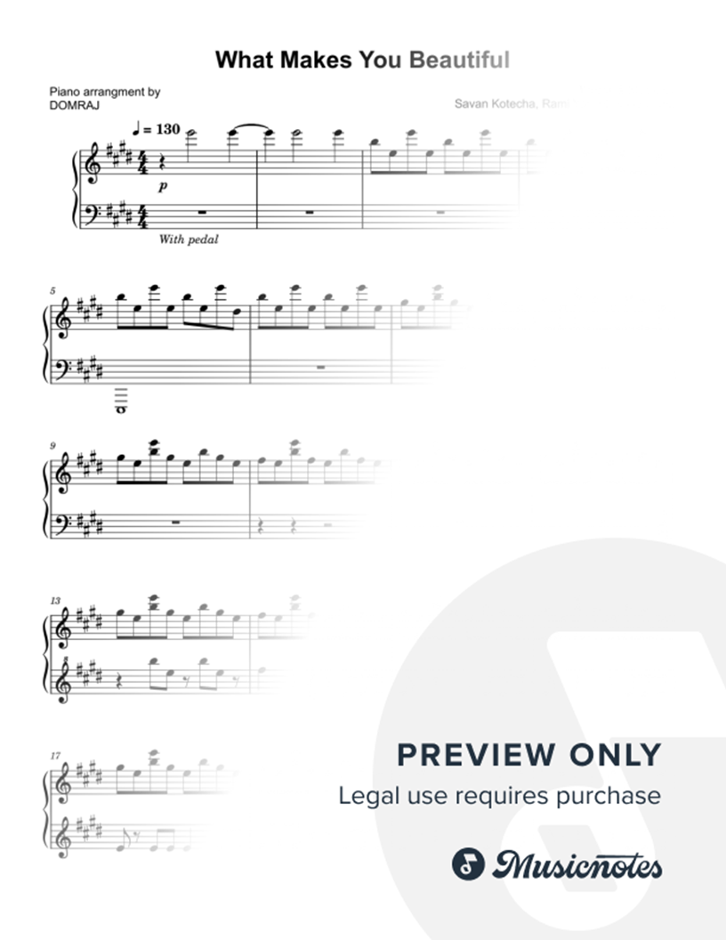 Piano solo arrangement of What Makes You Beautiful. Inspired by The Piano Guys' performance.