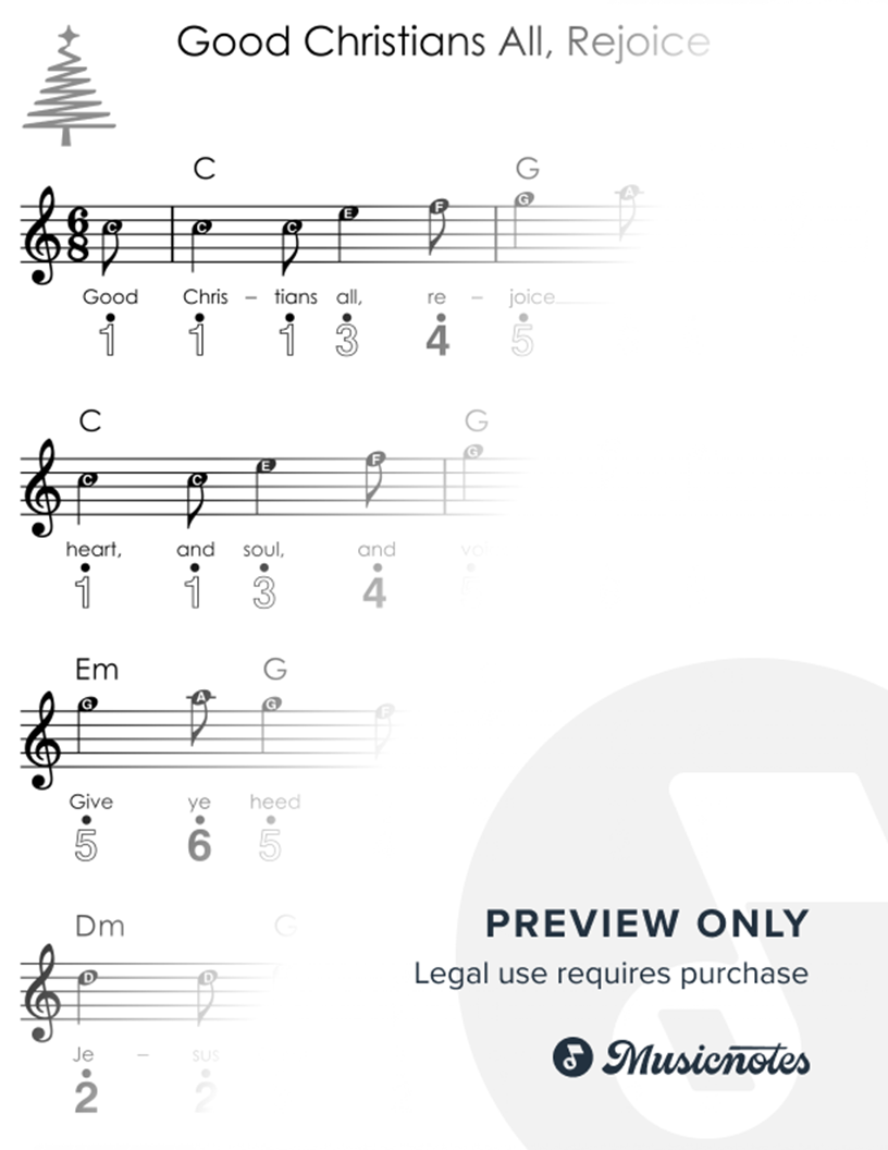Good Christians All, Rejoice I Easy Kalimba Christmas Sheet Music for Beginners |