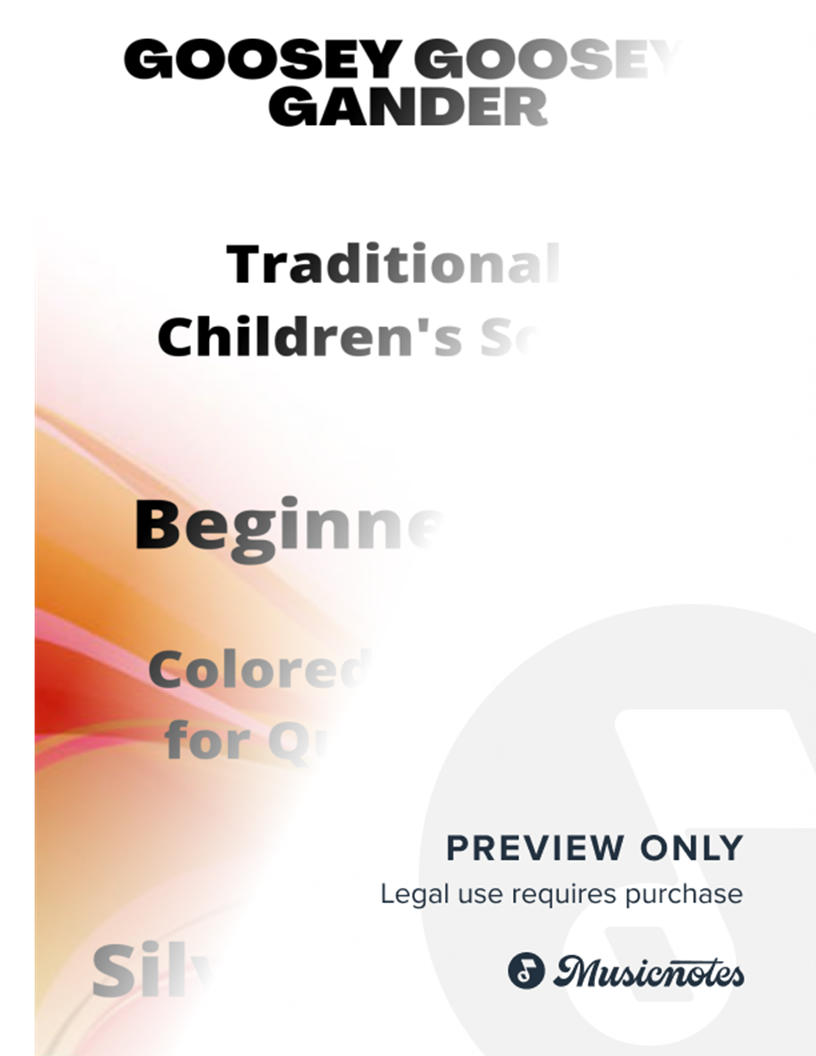 Goosey Goosey Gander Beginner Piano Sheet Music with Colored Notation |