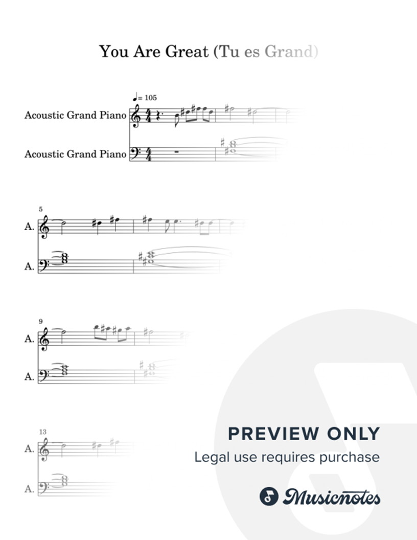 Many of the arrangements on Musicnotes have transpositions available, typically in C Major, as well as 3 sharps and 3 flats. If you do not see your desired key, you can request a transposition by reaching out to Customer Support.