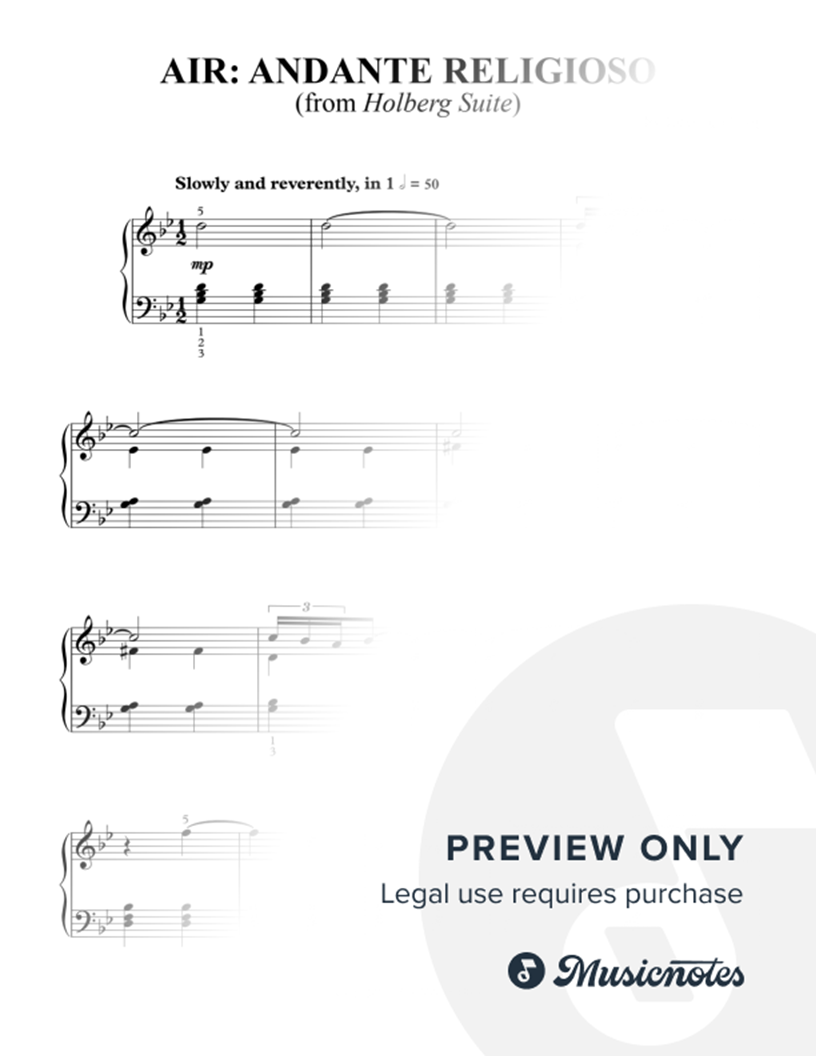 Air: Andante religioso (from Holberg Suite) for easy piano |