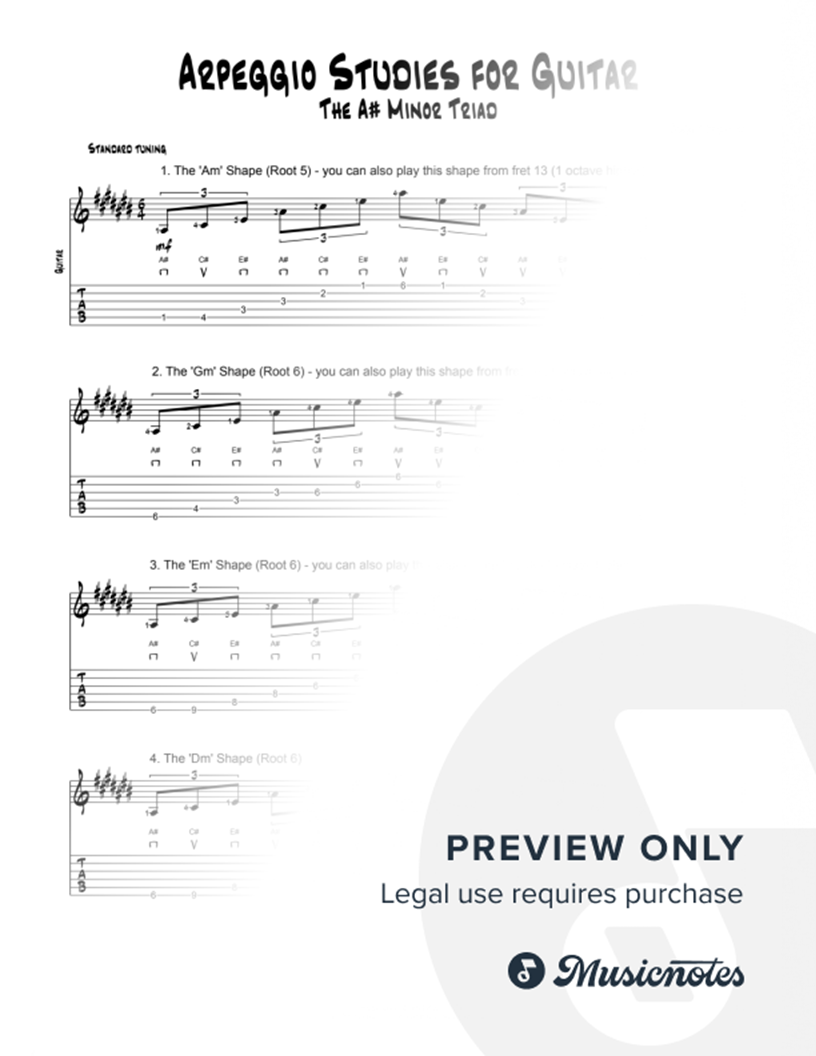 Arpeggio Studies for Guitar - The A# Minor Triad |
