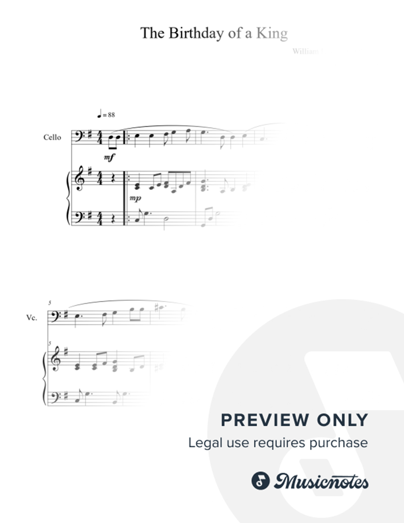 The Birthday of a King (Cello Solo with Piano Accompaniment) |