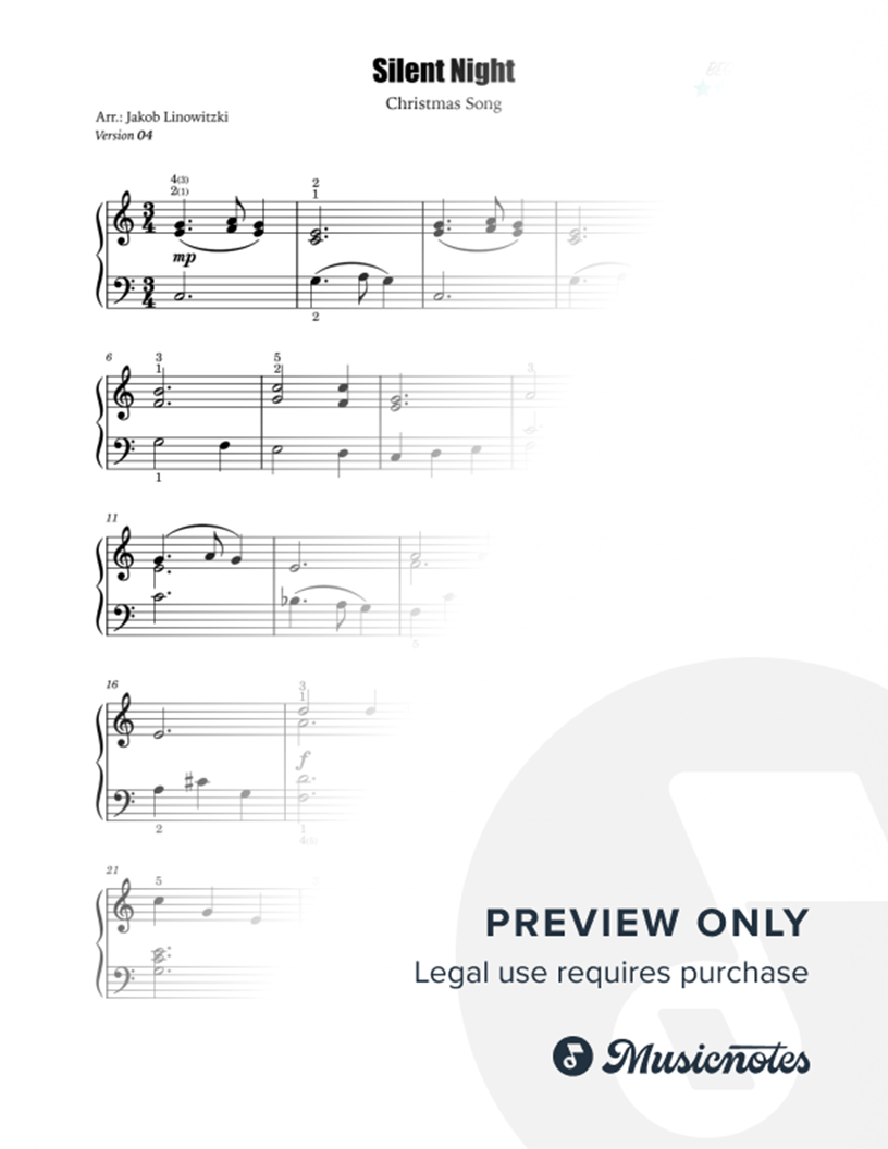 SILENT NIGHT (Stille Nacht) - Piano Cover for Beginner (4/5) - version 04 |