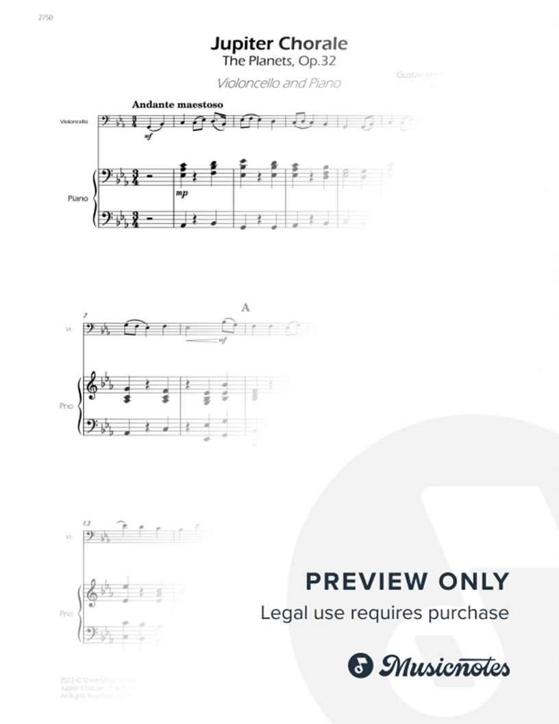 Jupiter Chorale from The Planets - Cello and Piano (Full Score and Parts) |