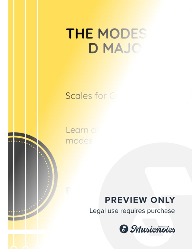 These info sheets show guitarists how to play all of the 7 Modes in the key of D Major, in a variety of positions around the guitar neck. In standard notation and TAB, with note names and fingerings written into the score. All sheets also have the diatonic chords for each mode.