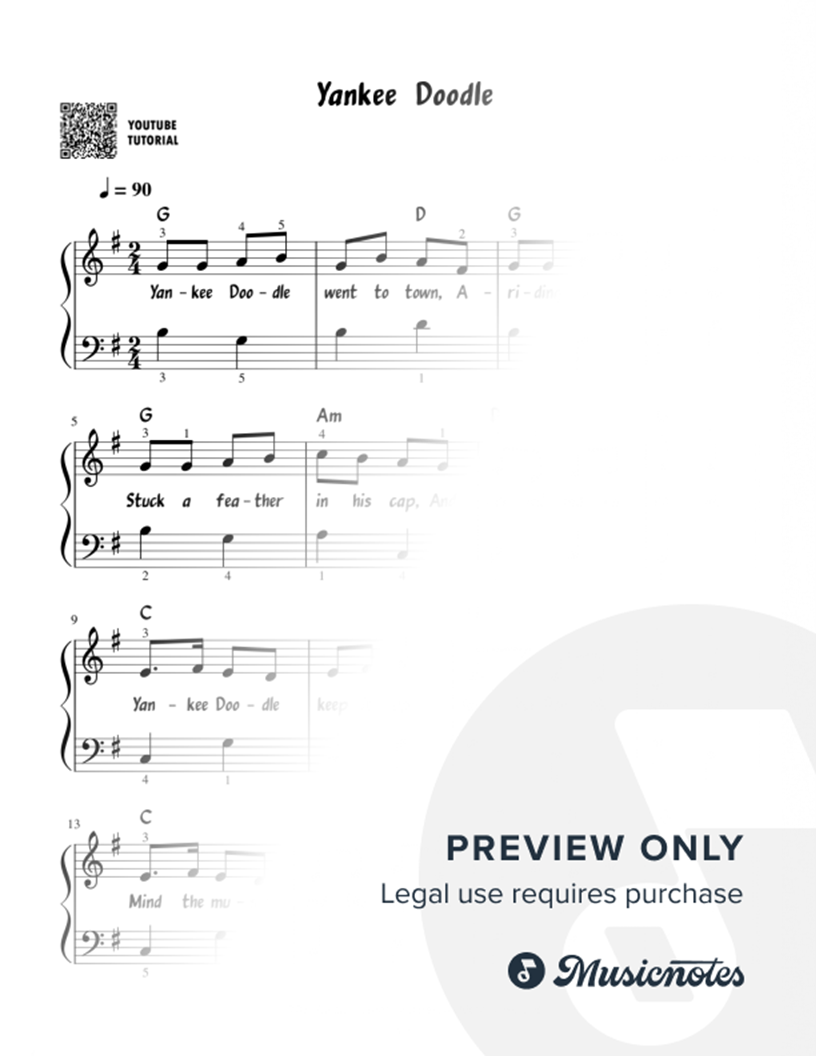 Yankee Doodle | Easy Piano Sheet Music| Children's Song | Easy Arrangement | Lyrics, Fingering, Chords Included | Beginner Version | Piano | Keyboard | Simple Sheet Music | Video Tutorial | Songs for Kids |