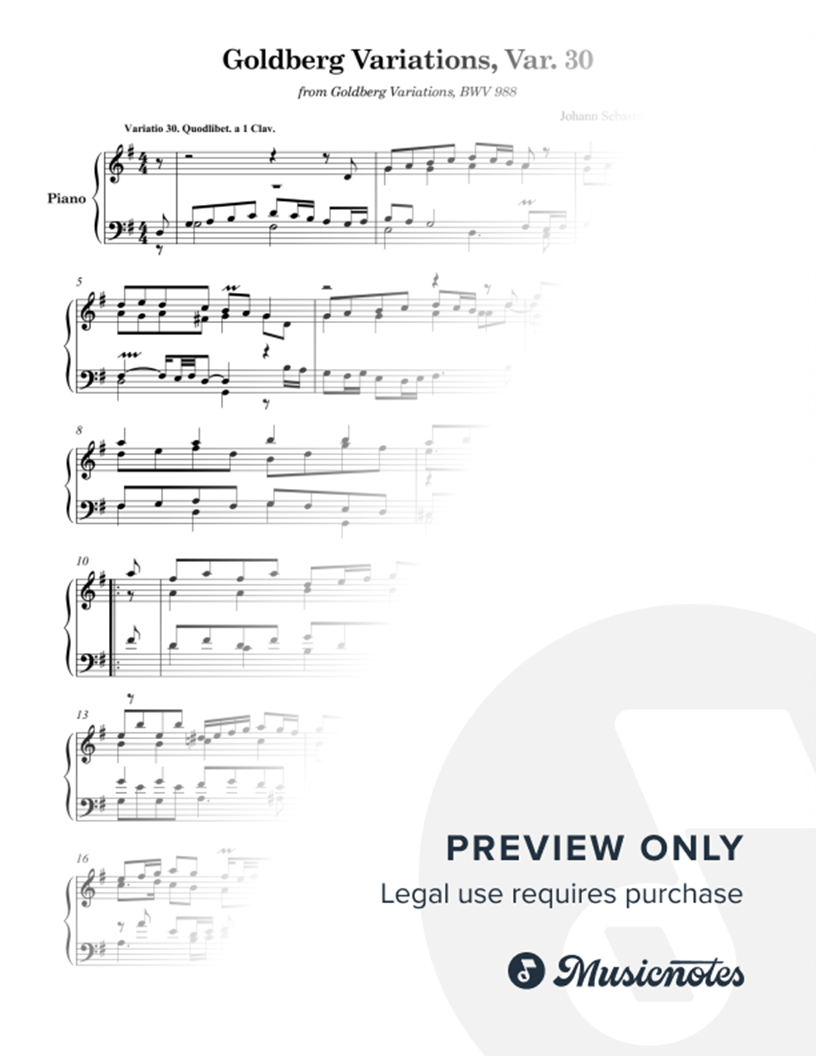 J.S. Bach: Goldberg Variations, BWV 988: Var. 30 (as played by Víkingur Ólafsson) for Piano |