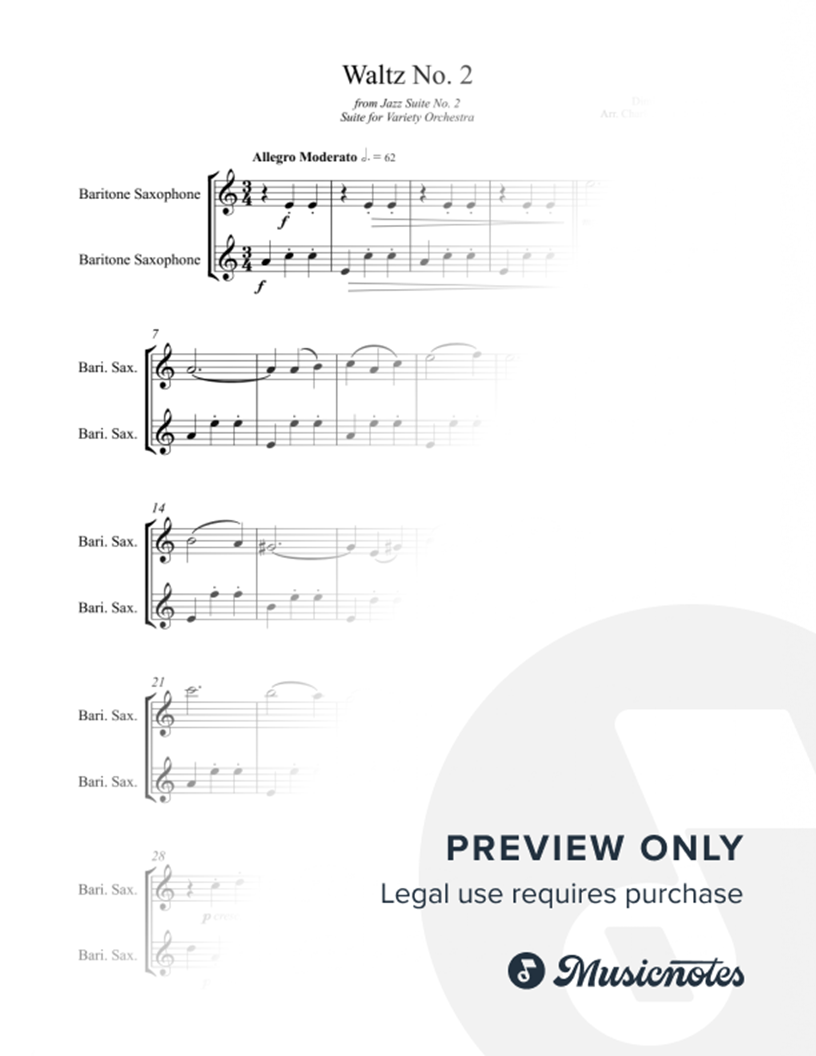 Waltz No. 2 - Dimitri Schostakovich - EASY Baritone Saxophone Duet |