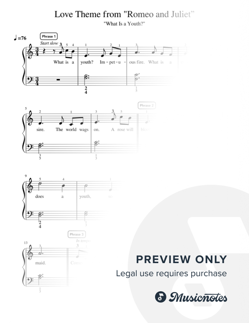 Romeo and Juliet (Love Theme) - Nino Rota - Intermediate |