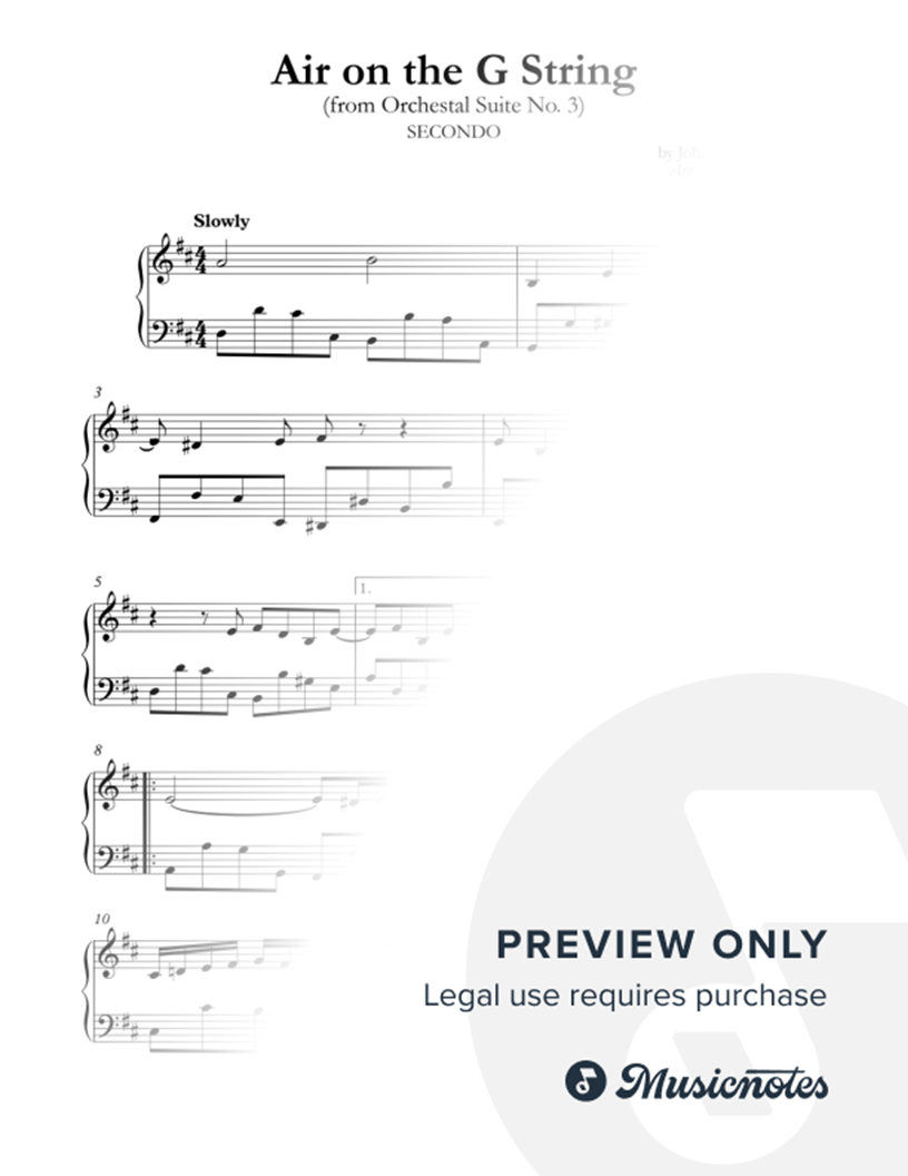 Air on the G String (from Orchestral Suite No. 3) for piano duet |