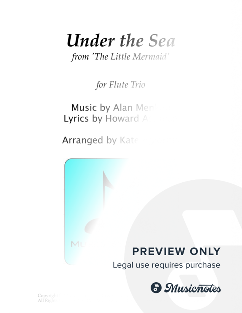 The seaweed is always greener, in somebody else's lake! A bright calypso tune, 'Under the Sea' from Disney's animated classic 'The Little Mermaid' will be a fun addition to your performance repertoire. Scored here for Flute Trio.